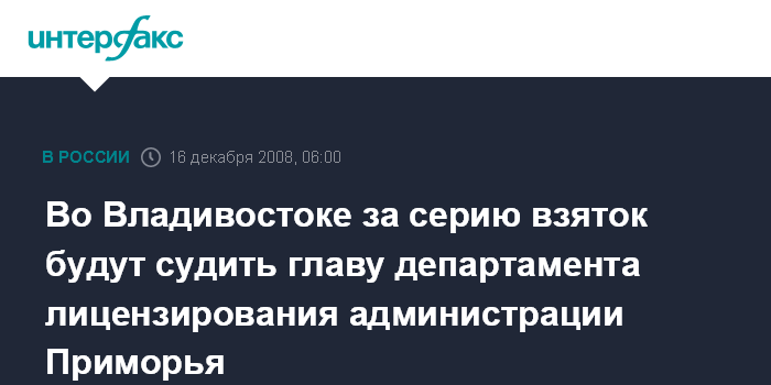 Как сообщили агентству "Интерфакс - Дальний Восток" старший помощник руководителя СУ СКП РФ по Приморью Аврора Римская, уголовное дело против чиновника и его подчиненной Ларисы Чигровой, которая выступала посредником при передаче ему денег, направлено в суд.