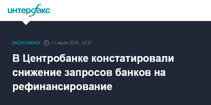 В Центробанке констатировали снижение запросов банков на рефинансирование