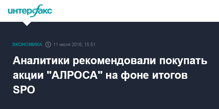 Москва. 11 июля. INTERFAX.RU - Акции "АЛРОСА" после удачного проведения вторичного размещения бумаг в размере 10,9% из состава госпакета сохраняют перспективы дальнейшего роста, аналитики инвесткомпаний и банков рекомендуют покупать эти инструменты в ожидании спроса со стороны индексных фондов.