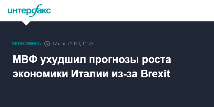 МВФ ухудшил прогнозы роста экономики Италии из-за Brexit
