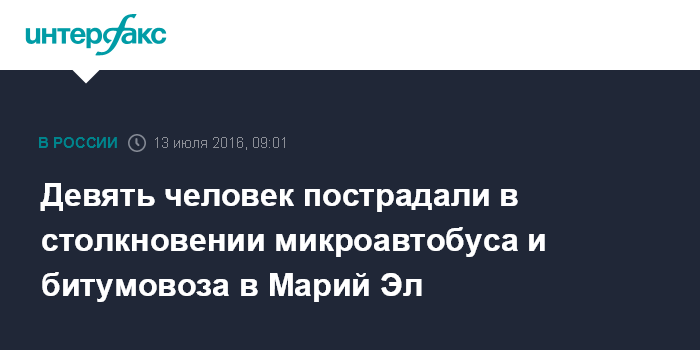 Девять человек пострадали в столкновении микроавтобуса и битумовоза в Марий Эл