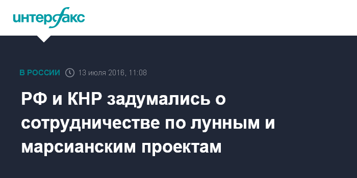 РФ и КНР задумались о сотрудничестве по лунным и марсианским проектам