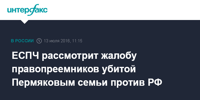 ЕСПЧ рассмотрит жалобу правопреемников убитой Пермяковым семьи против РФ