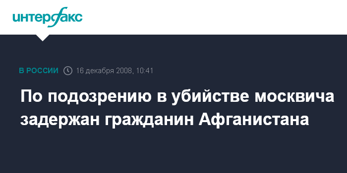 Москва. 16 декабря. INTERFAX.RU - На севере столицы сотрудники правоохранительных органов задержали гражданина Афганистана, подозреваемого в убийстве москвича, сообщил "Интерфаксу" источник в правоохранительных органах города во вторник.
