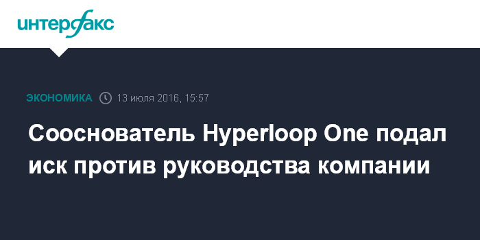 Сооснователь Hyperloop One подал иск против руководства компании