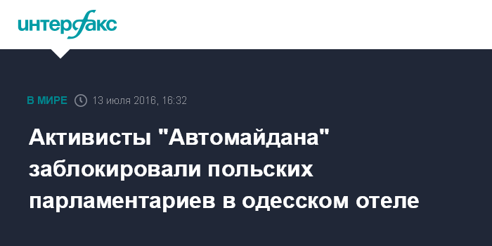 Москва. 13 июля. INTERFAX.RU - Активисты "Автомайдана" заблокировали вход в гостиницу "Женева" в Одессе, в которой остановились члены польского Сената Ежи Вчислав и Ян Рулевский.