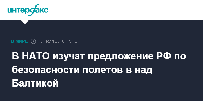 Москва. 13 июля. INTERFAX.RU - НАТО изучит поступившее от РФ предложение по безопасности полетов в районе Балтии, заявил в среду генсек альянса Йенс Столтенберг на пресс-конференции по итогам заседания Совета Россия - НАТО.