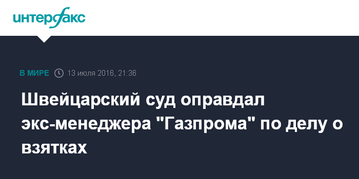 Швейцарский суд оправдал экс-менеджера "Газпрома" по делу о взятках