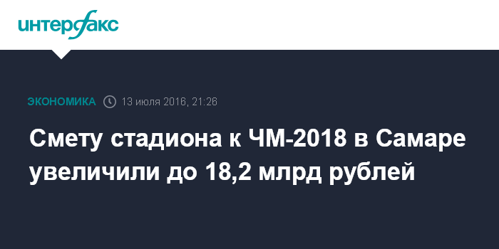 Смету стадиона к ЧМ-2018 в Самаре увеличили до 18,2 млрд рублей