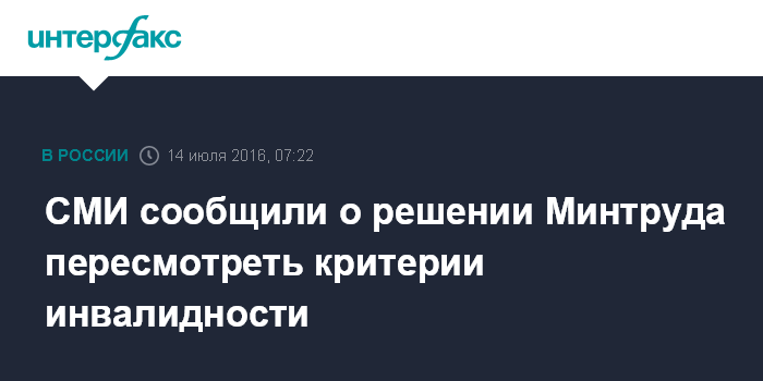 Москва. 14 июля. INTERFAX.RU - Министерство труда и соцзащиты России после многочисленных жалоб пересмотрит критерии инвалидности. Как пишет в четверг "Коммерсантъ", параллельно ведомство занялось изменением структуры самого процесса установления инвалидности - медико-социальную экспертизу (МСЭ).