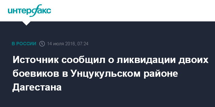 Москва. 14 июля. INTERFAX.RU - Силовики ликвидировали двух боевиков в селе Харачи Унцукульского района Дагестана, сообщил агентству "Интерфакс" источник в правоохранительных структурах региона.