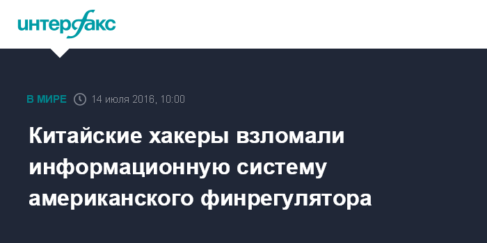 Китайские хакеры взломали информационную систему американского финрегулятора