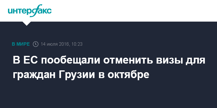 Москва. 14 июля. INTERFAX.RU - Представитель Европейской комиссии по вопросам соседской политики и расширению Йоханнес Хан заявил, что Грузия получит безвизовый режим с ЕС в октябре.