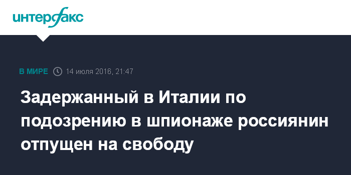 Задержанный в Италии по подозрению в шпионаже россиянин отпущен на свободу