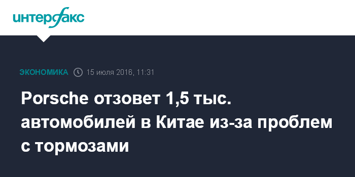 Москва. 15 июля. INTERFAX.RU - Автодилеры отзовут 1479 импортированных автомобилей Porsche в материковом Китае из-за неисправности в креплении педали тормоза, сообщило Главное государственное управление технического и карантинного контроля за качеством товаров КНР.