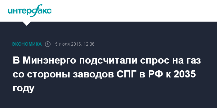 Москва. 15 июля. INTERFAX.RU - Минэнерго ожидает потребления газа в РФ к 2035 году для производства СПГ в объеме от 60 млрд до 100 млрд кубометров, сообщил заместитель главы Минэнерго Кирилл Молодцов в ходе форума "Петербургский диалог" в Петербурге в пятницу.