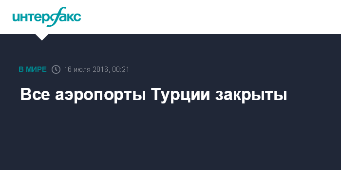 Москва. 16 июля. INTERFAX.RU - Все аэровокзалы в Турции закрыты, сообщает телеканал TRT.