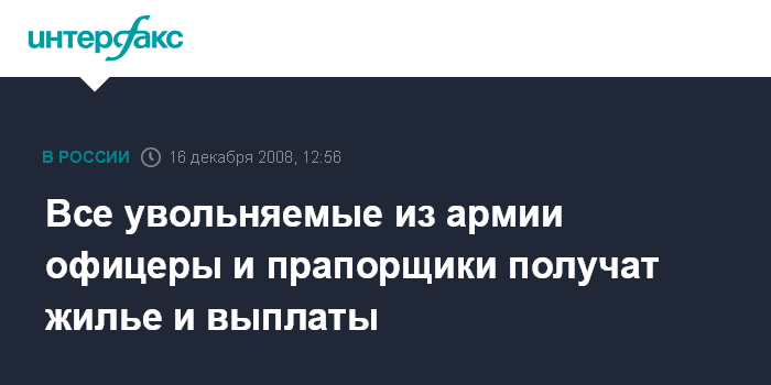 "Все офицеры, которые будут подлежать увольнению, в обязательном порядке будут обеспечены жильем и соответствующими денежными выплатами. То же самое прапорщики", - сказал Макаров журналистам во вторник.