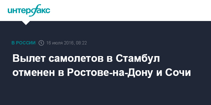 Вылет самолетов в Стамбул отменен в Ростове-на-Дону и Сочи