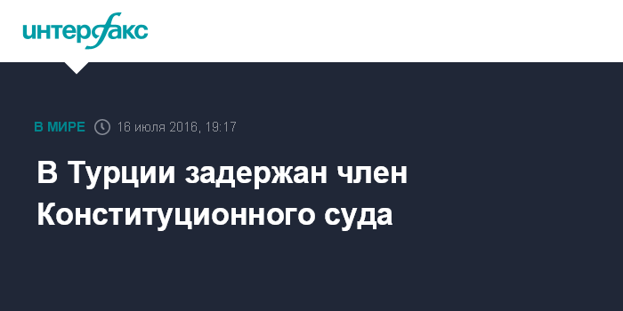 Москва. 16 июля. INTERFAX.RU - Член Конституционного суда Турции Алпарслан Алтан задержан за попытку военного переворота, передает в субботу турецкий телеканал NTV.