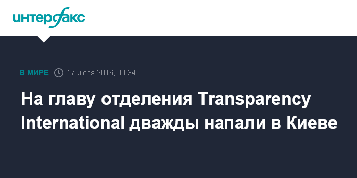 Москва. 17 июля. INTERFAX.RU - Неизвестные в Киеве в ночь на субботу напали на главу украинского отделения международной неправительственной организации Transparency International (TI) Андрея Масурова, отобрав у него сумку с ноутбуком.
