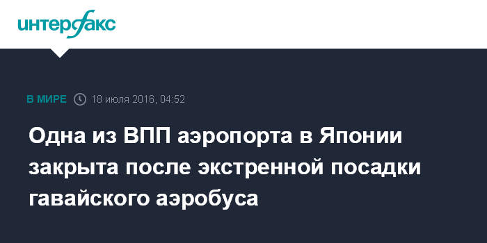 Москва. 18 июля. INTERFAX.RU - Администрация токийского международного аэропорта Ханеда закрыла одну из взлетно-посадочных полос после аварийной посадки самолета А-330 гавайских авиалиний, сообщили в понедельник японские СМИ.