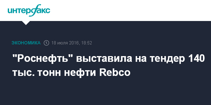 Москва. 18 июля. INTERFAX.RU - НК "Роснефть" выставила на тендер 140 тыс. тонн российской экспортной смеси (Rebco) с отгрузкой в августе на базисе FOB Новороссийск.