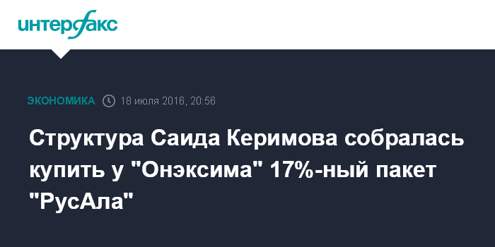 Структура Саида Керимова собралась купить у "Онэксима" 17%-ный пакет "РусАла"