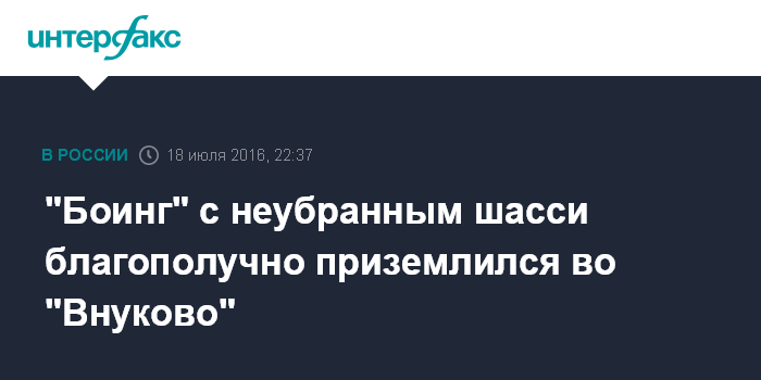 Москва. 18 июля. INTERFAX.RU - Дальнемагистральный "Боинг", вылетевший из Москвы на Сахалин, у которого не убралось шасси, благополучно вернулся в аэропорт вылета, сообщил "Интерфаксу" источник в экстренных службах.