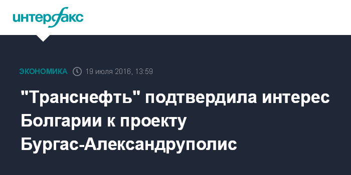 Москва. 19 июля. INTERFAX.RU - "Транснефть" получила от Болгарии уведомление о сохранении перспектив проекта Бургас-Александруполис, сообщил журналистам глава компании Николай Токарев.
