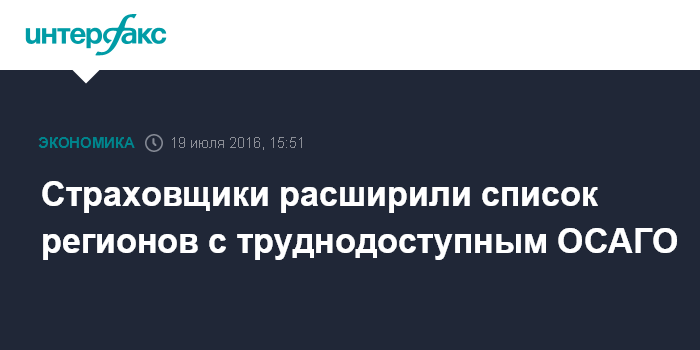 Страховщики расширили список регионов с труднодоступным ОСАГО