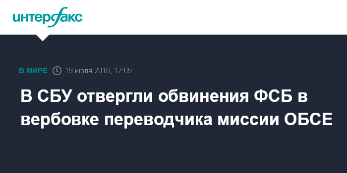 Москва. 19 июля. INTERFAX.RU - Советник главы Службы безопасности Украины Юрий Тандит опроверг заявление российских спецслужб о том, что переводчик мониторинговой миссии ОБСЕ являлся агентом СБУ.