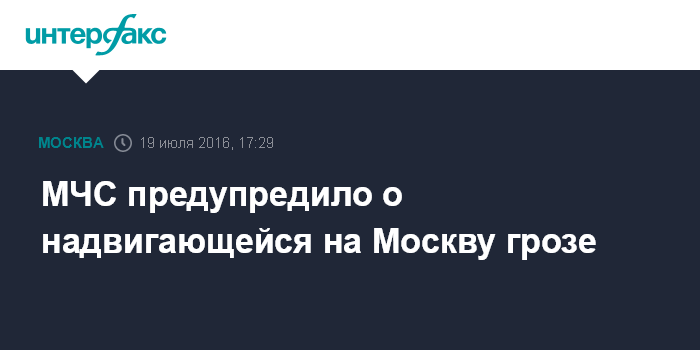 Москва. 19 июля. INTERFAX.RU - Непогода в Москве ожидается с вечера вторника до шести утра среды, 20 июля, сообщили "Интерфаксу" в пресс-службе столичного МЧС.
