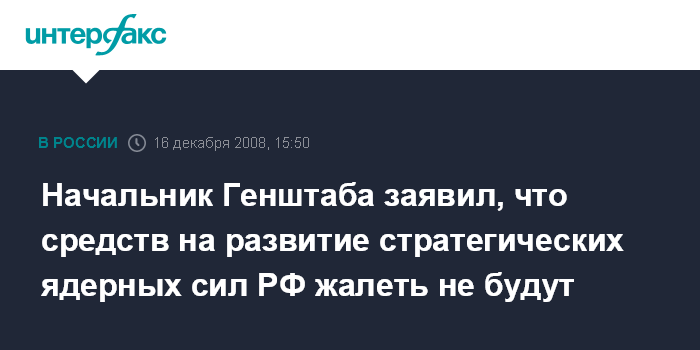 "Мы придавали, придаем и будем придавать стратегическим ядерным силам первостепенное значение, и на это денег жалеть не будем", - подчеркнул начальник Генштаба.