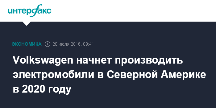 Москва. 20 июля. INTERFAX.RU - Германский автоконцерн Volkswagen AG намерен начать выпуск электромобилей на территории Северной Америки к 2020 году, заявил новый глава американского подразделения компании Хайнрих Вобкен.