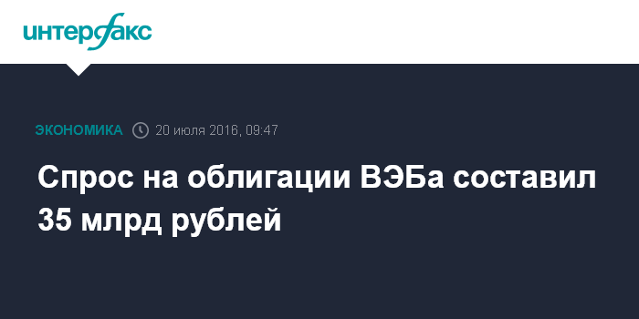 Спрос на облигации ВЭБа составил 35 млрд рублей