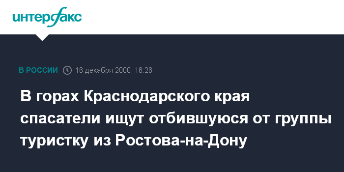 Москва. 16 декабря. INTERFAX.RU - В районе Туапсе (Краснодарский край) в горах потерялась туристка из Ростова-на-Дону.