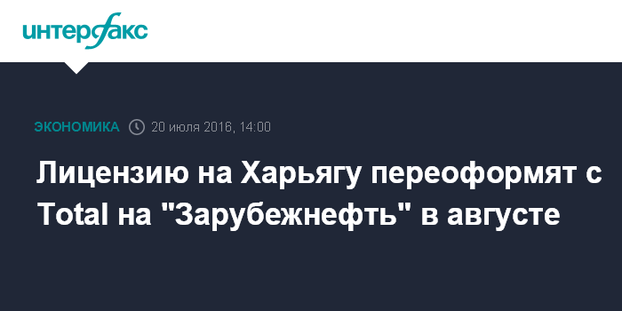 Лицензию на Харьягу переоформят с Total на "Зарубежнефть" в августе