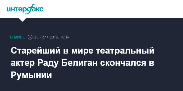 Старейший в мире театральный актер Раду Белиган скончался в Румынии