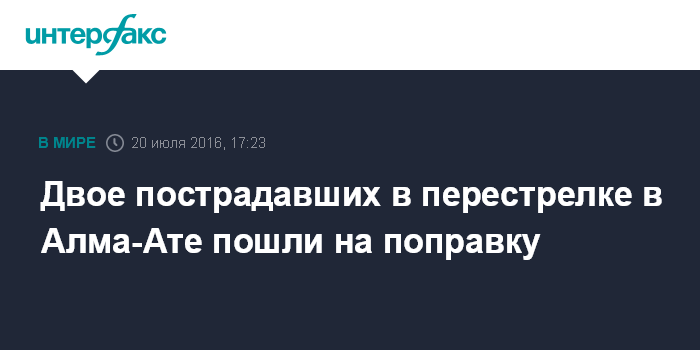 Москва. 20 июля. INTERFAX.RU - Состояние здоровья двоих раненых во время перестрелки в Алма-Ате улучшилось, они переведены из реанимации в палаты.