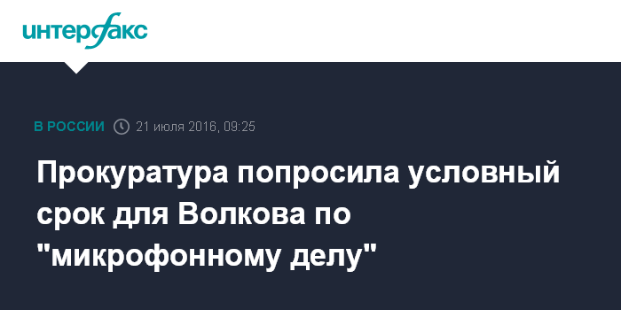 Прокуратура попросила условный срок для Волкова по "микрофонному делу"