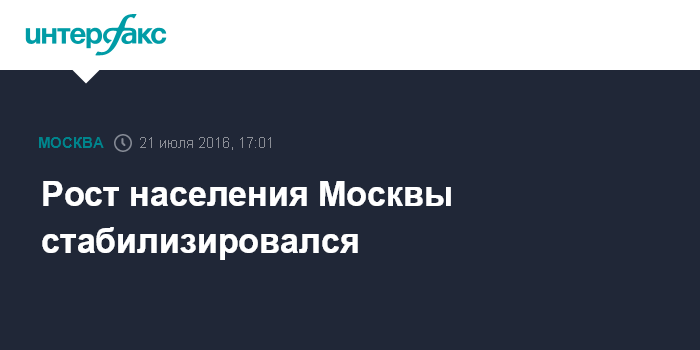 Москва. 21 июля. INTERFAX.RU - Численность населения Москвы не растет большими темпами, заявил мэр столицы Сергей Собянин в интервью газете "Московский комсомолец".