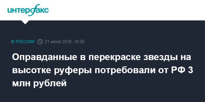 Оправданные в перекраске звезды на высотке руферы потребовали от РФ 3 млн рублей