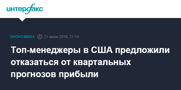 Топ-менеджеры в США предложили отказаться от квартальных прогнозов прибыли