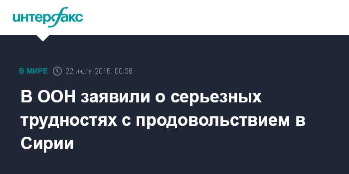 Москва. 22 июля. INTERFAX.RU - Жителям нескольких городов Сирии грозит голод из-за боевых действий, которые препятствуют доставке гуманитарных грузов, заявил координатор гуманитарной помощи ООН в САР Ян Эгеланн.