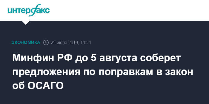 Минфин РФ до 5 августа соберет предложения по поправкам в закон об ОСАГО