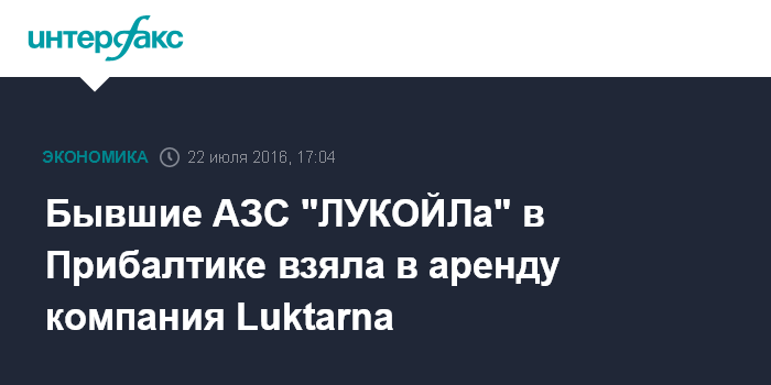 Москва. 22 июля. INTERFAX.RU - Компания Luktarna семьи Ивана Палейчика, главы компании Lukoil Baltija, владеющей заправочными станциями "ЛУКОЙЛа" в Прибалтике, возьмет в аренду 73 АЗС Lukoil Baltija.