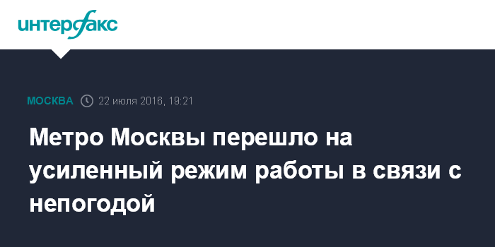 Москва. 22 июля. INTERFAX.RU - Московское метро переведено на усиленный режим работы из-за дождей в столице.