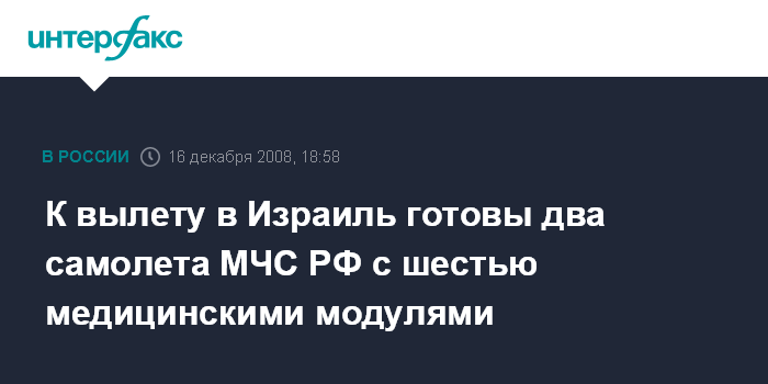 "Готовятся к вылету два самолета МЧС с шестью медицинскими модулями. МЧС находится в контакте с израильскими медиками, работающими на месте", - сообщили "Интерфаксу" в МЧС РФ.