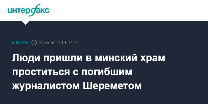 Москва. 23 июля. INTERFAX.RU - В Минске в субботу проходит церемония прощания с погибшим в Киеве 20 июля журналистом Павлом Шереметом, сообщает корреспондент "Интерфакса".